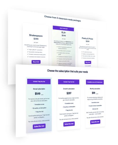 Choose between Shakespeare, Poetry & Prose, or ELA+ (the best of both!).
